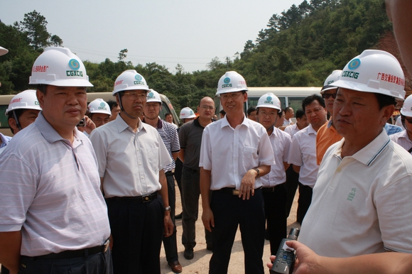 在建設(shè)施工現(xiàn)場,車榮福書記、莫永清副主任、潘巍廳長認(rèn)真聽取了六景至欽州港高速公路工程建設(shè)指揮部關(guān)于項目建設(shè)進(jìn)展情況的工作匯報,詳細(xì)了解該項目進(jìn)度、質(zhì)量、安全和征地拆遷情況,對六欽路完成預(yù)定投資目標(biāo)表示充分肯定,希望指揮部與從業(yè)單位進(jìn)一步深入貫徹落實自治區(qū)年中工作會議精神,增投入、強監(jiān)控,攻堅克難,全力以赴加快推進(jìn)項目建設(shè)。潘巍廳長還就工程建設(shè)項目情況作了解答,并與車榮福書記、莫永清副主任等領(lǐng)導(dǎo)交換了意見。
