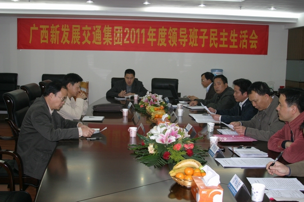 12月21日,廣西新發(fā)展交通集團(tuán)有限公司黨委在南寧召開了以“堅(jiān)持以人為本企業(yè)文化理念,發(fā)揚(yáng)密切聯(lián)系職工群眾作風(fēng)”為主題的2011年黨政領(lǐng)導(dǎo)班子民主生活會(huì)。自治區(qū)交通運(yùn)輸廳總工程師王劼耘、廳直屬機(jī)關(guān)黨委專職副書記羅華芝到會(huì)指導(dǎo)。集團(tuán)公司朱堅(jiān)和、李定倫、張友坐、劉明洪、鄧遠(yuǎn)志、覃炳賢等六位領(lǐng)導(dǎo)班子成員出席會(huì)議,集團(tuán)公司機(jī)關(guān)黨支部書記列席會(huì)議。