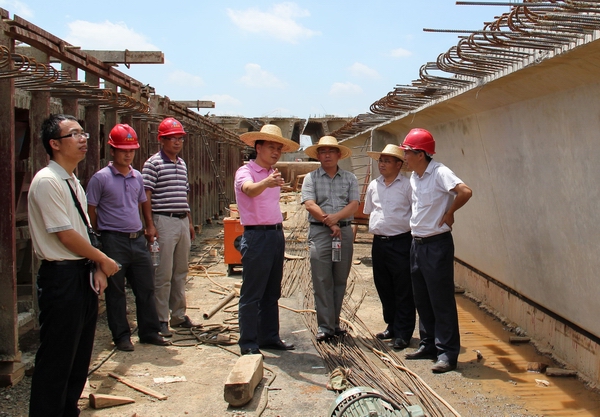 5月9日,集團(tuán)公司副總經(jīng)理劉明洪蒞臨廣西航務(wù)工程處崇左市工業(yè)區(qū)公路№2標(biāo)檢查指導(dǎo)工作。劉明洪副總經(jīng)理重點(diǎn)視察了路面水泥穩(wěn)定碎石底基層試驗(yàn)段的鋪設(shè)和橋梁預(yù)制場(chǎng)預(yù)制箱梁情況,參觀過(guò)程中聽(tīng)取了項(xiàng)目施工情況匯報(bào),了解目前施工存在的困難,以及下一步的施工計(jì)劃部署情況。
