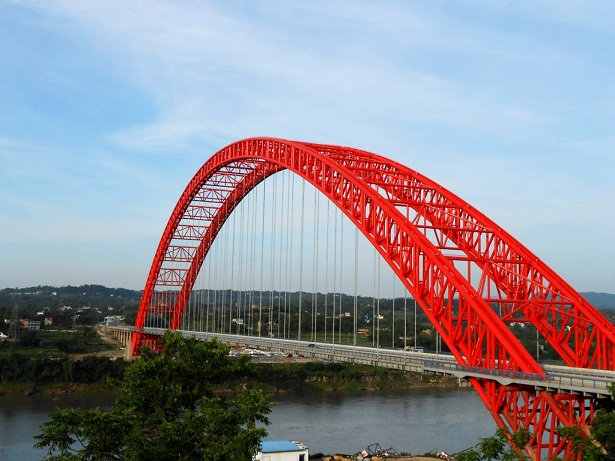 圖為運(yùn)用該技術(shù)成果建成的世界第一拱—合江長江一橋(波司登大橋)