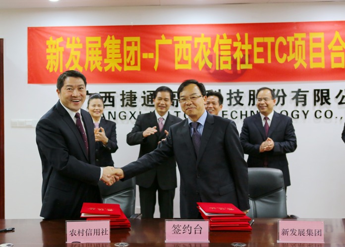 2016年3月2日、3月4日,集團(tuán)公司分別與中國工商銀行廣西區(qū)分行、廣西農(nóng)村信用社簽訂ETC項(xiàng)目合作協(xié)議,標(biāo)志著新發(fā)展集團(tuán)多措并舉全面全力推廣拓展ETC項(xiàng)目又邁出了堅(jiān)實(shí)的步伐。