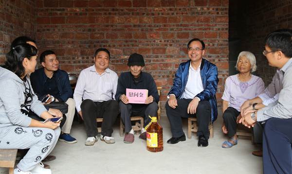 10月25日,集團公司副總經(jīng)理李德智、辦公室主任磨立堂,工程院黨總支部書記、院長謝登禹以及合山市人大常委會主任藍賓北一行到集團公司扶貧聯(lián)系來賓合山市河里鎮(zhèn)河里村開展精準(zhǔn)扶貧日走訪慰問活動。通過開展座談交流,進一步掌握河里村脫貧攻堅進展情況,并為下一步脫貧工作提出建議與對策。同時,還來到河里村韋啟助、羅耀權(quán)、曾有姣、韋遷池等貧困戶的家里,了解生產(chǎn)生活情況,并送上了慰問金和慰問品。