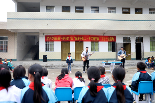 11月10日,集團(tuán)公司團(tuán)委組織青年團(tuán)干赴羅城縣東門(mén)鎮(zhèn)德音村小學(xué)參加共青團(tuán)廣西壯族自治區(qū)交通運(yùn)輸廳委員會(huì)組織的廣西交通運(yùn)輸行業(yè)2017年“同慶十九大•扶貧送關(guān)愛(ài)”主題公益活動(dòng)。