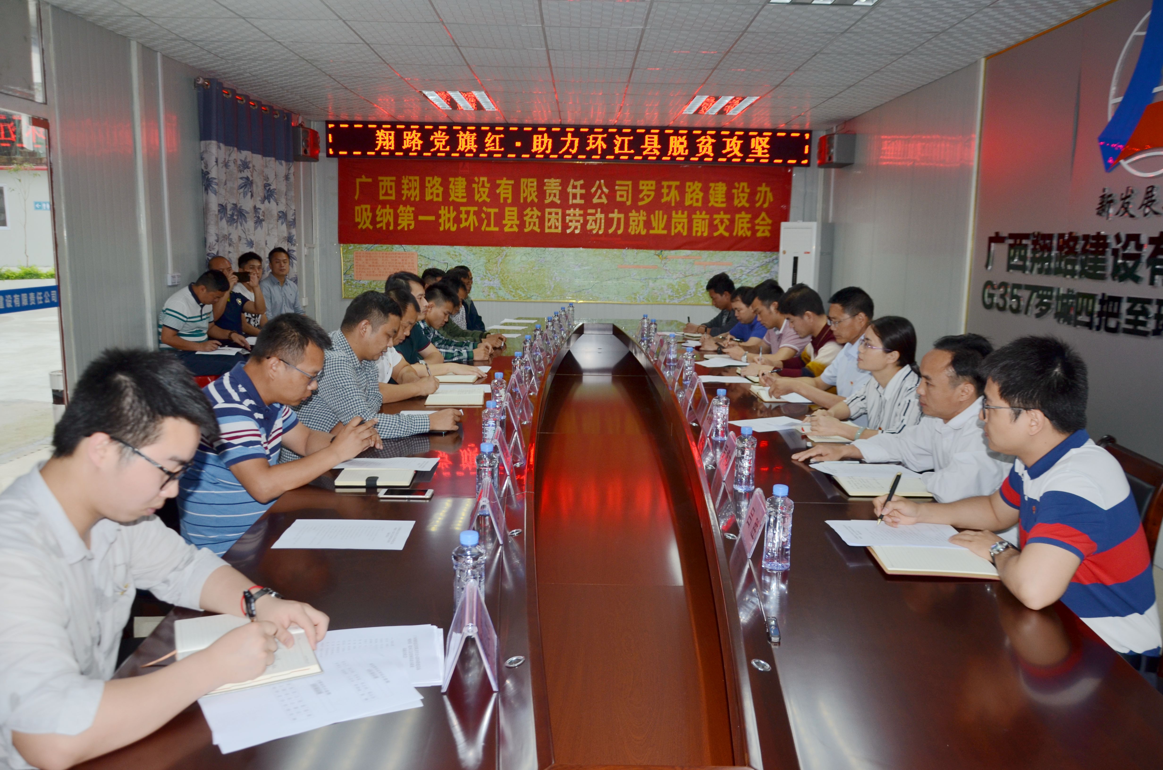 5月9日,廣西新發(fā)展交通集團翔路公司在羅環(huán)路召開吸納環(huán)江縣貧困勞動力就業(yè)崗前交底會,第一批5名貧困勞動力正式上崗,安排到該公司路網(wǎng)項目就業(yè)。經(jīng)過前期大量充分細致的調(diào)研準備工作后,廣西新發(fā)展集團路網(wǎng)項目“黨建+就業(yè)扶貧”工作取得了階段性成果,惠及環(huán)江貧困勞動力。