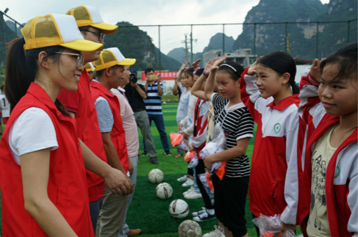 六也鄉(xiāng)中心小學(xué)韋校長對青年志愿者們的幫助表示衷心的感謝,他表示:志愿者們的愛心不僅解決了孩子們的運動場所問題,更是在孩子們的心中種下了希望的種子,圓了孩子們的足球夢。六年級的小浩作為球隊隊長為都巴高速志愿者代表送上錦旗,并表示一定不會辜負(fù)大家的愛心與期望,勤奮鍛煉、努力向上,做一個對社會有用的人。
