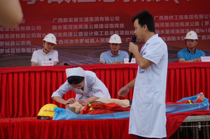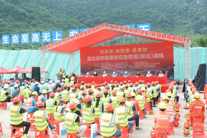 作為“防風(fēng)險 除隱患 遏事故”主題“安全生產(chǎn)月”活動內(nèi)容之一,該演練結(jié)合融水至河池高速公路項目施工中存在的高邊坡坍塌重大危險源的特點,旨在加強(qiáng)參建人員安全防范意識,提高安全應(yīng)急處置、救援能力。