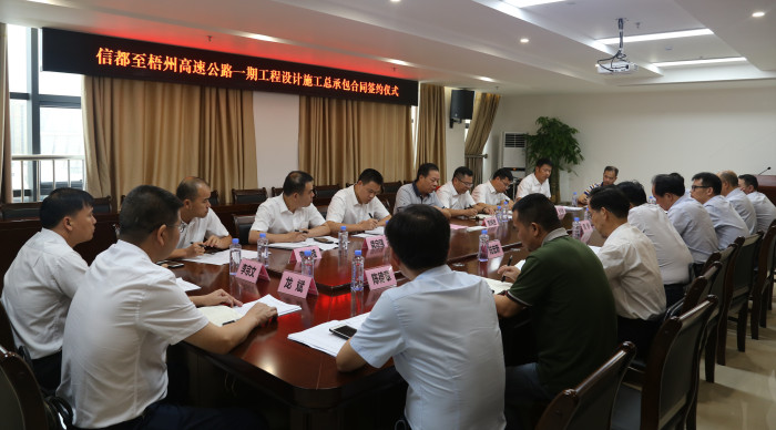 2019年7月22日下午,信都至梧州高速公路一期設計施工承包合同簽約儀式在廣西智慧交通研發(fā)中心1926會議室舉行。北投集團總工程師覃炳賢,公司領導賴水平、藍日彥、龔定強、蘇偉勝及中標單位路建集團、交通設計集團的領導以及各單位相關部門代表參加儀式。