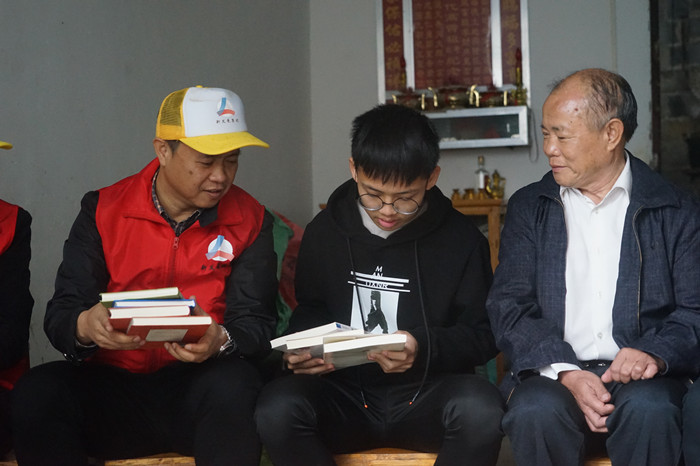 圖2:給貧困學(xué)子贈送書籍和助學(xué)金